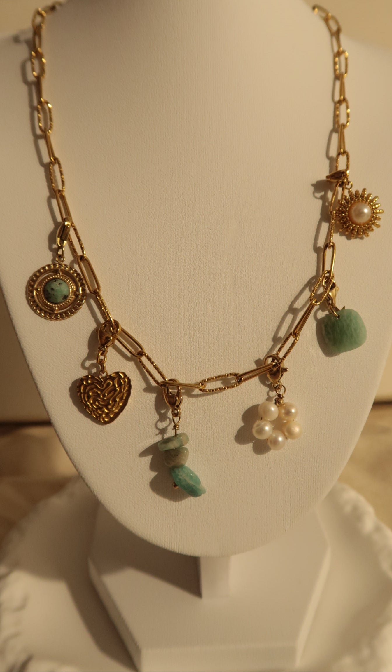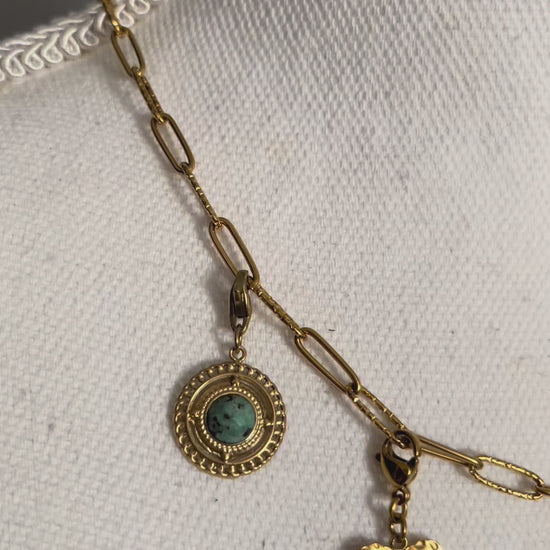 ✧ Pierre turquoise : pierre de protection et de clarté, elle rappelle les eaux grecques et la sagesse ancienne.