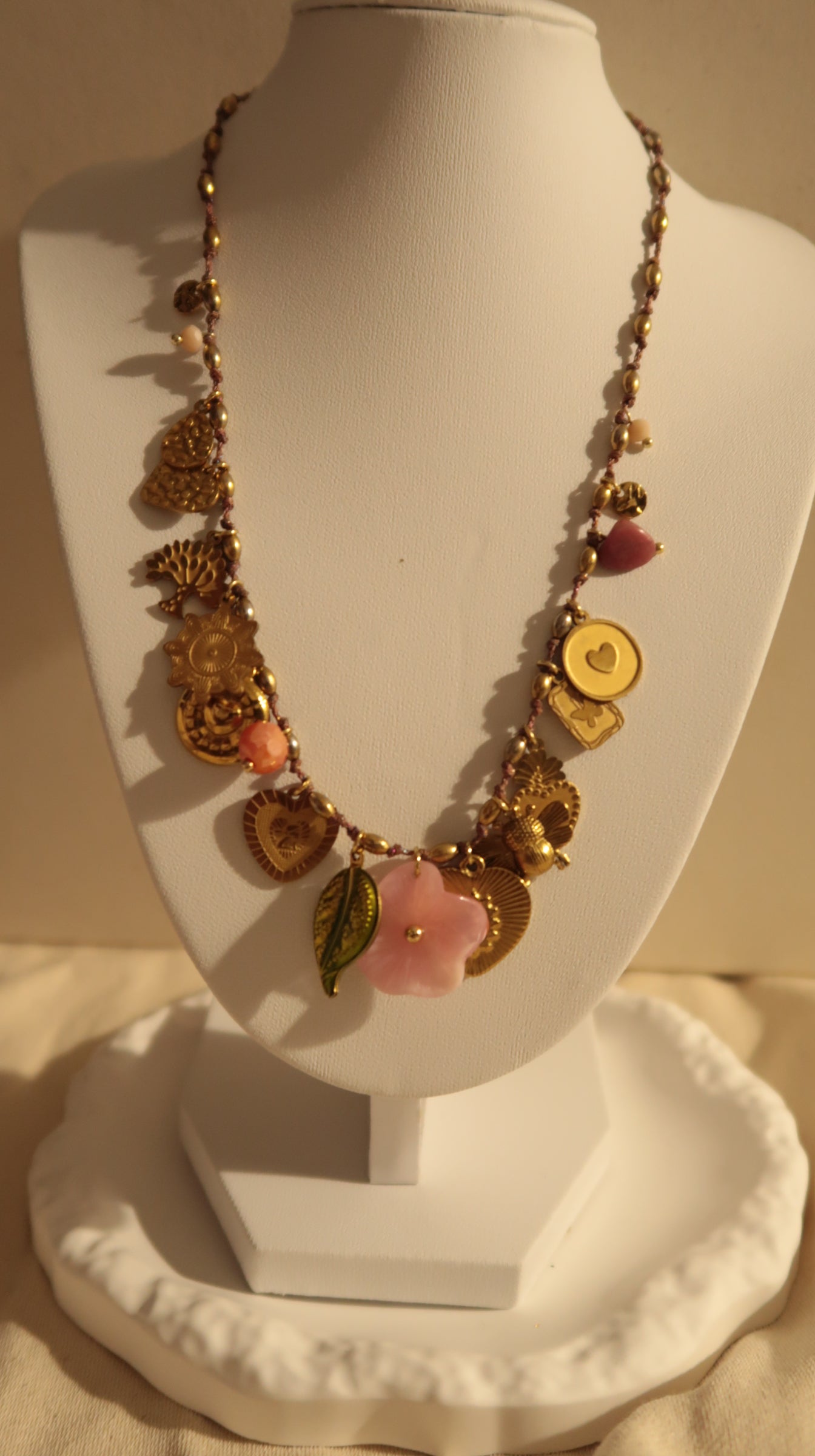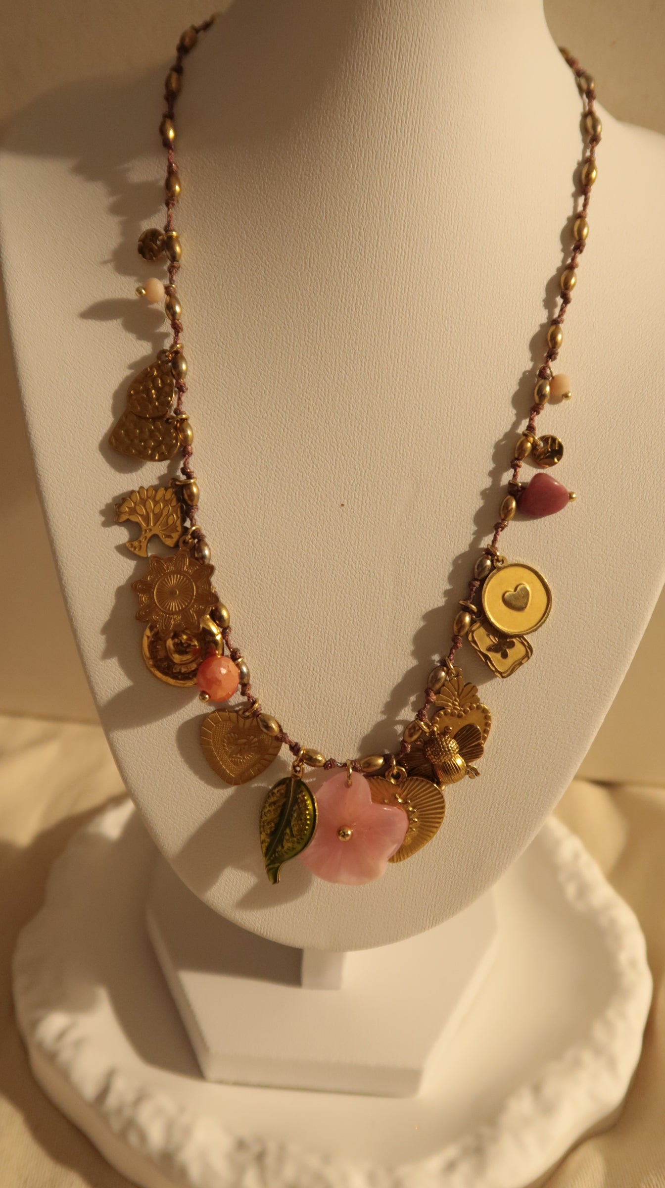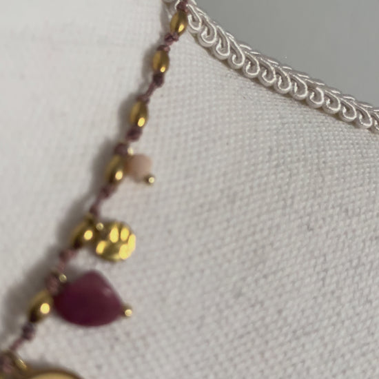 Collier " Garden " Fil Torsadé Rose, Doré & Symboles de Vie