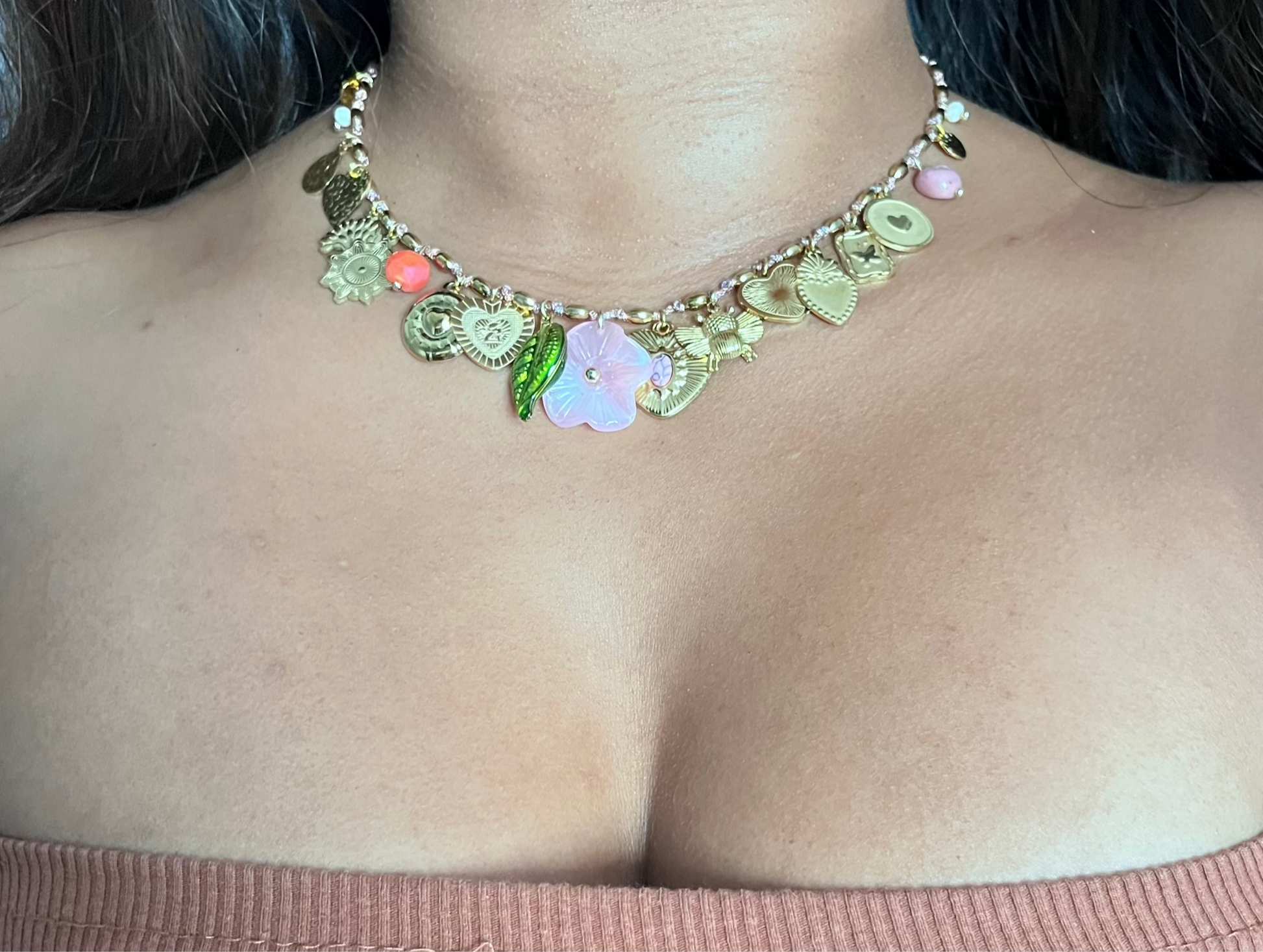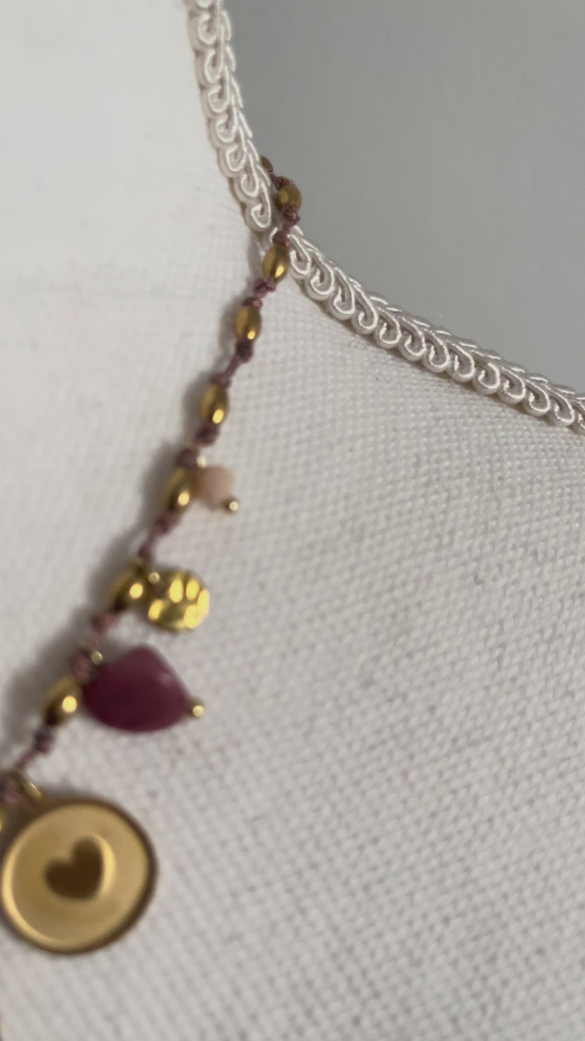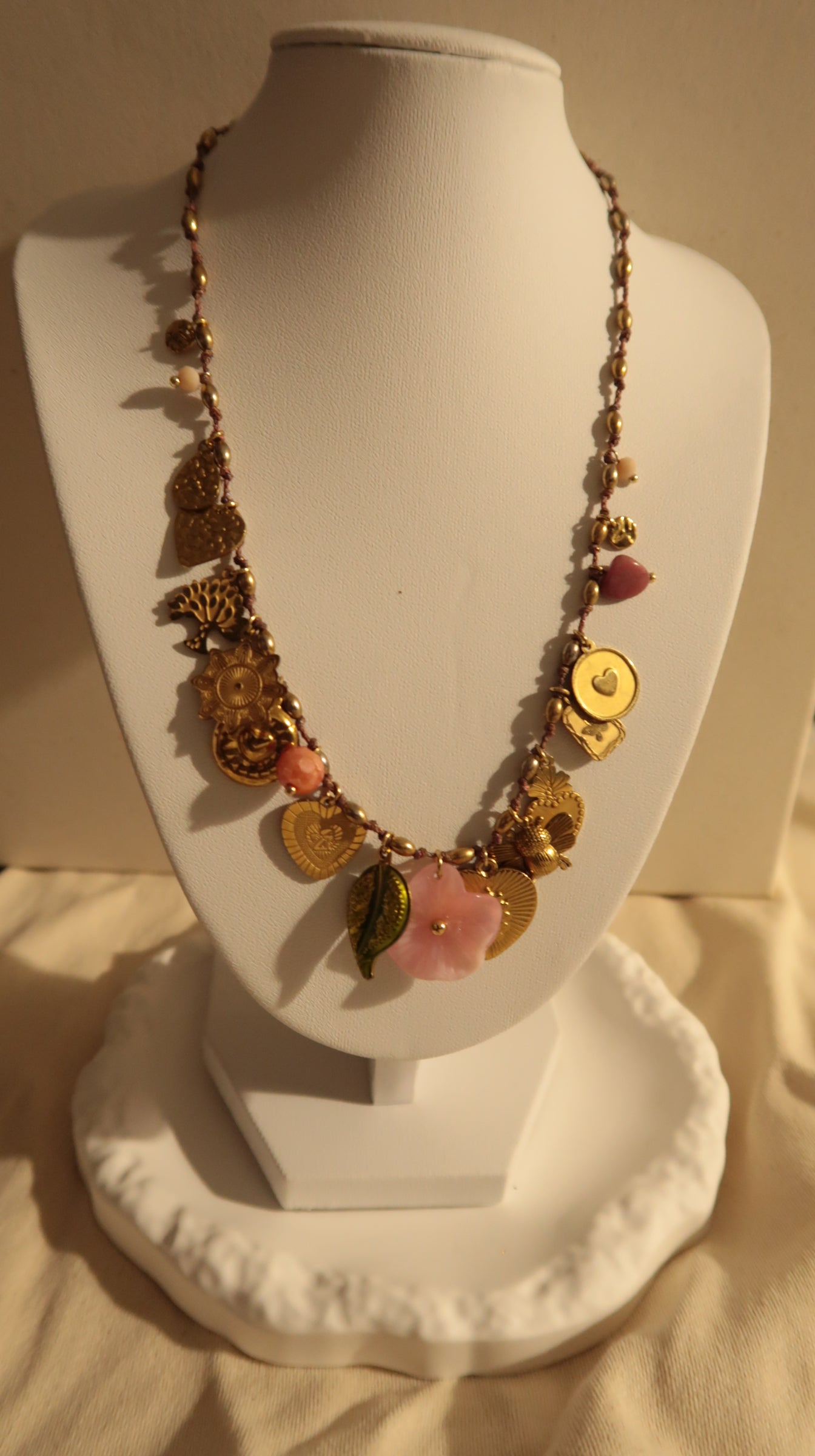 Collier " Garden " Fil Torsadé Rose, Doré & Symboles de Vie